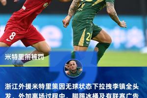 体育资讯04月08日讯 中足联公布对浙江外援米特里策处罚,米特里策因无球状态下拉拽李镇全头发,外加离场过程中,脚踢冰桶及有联赛广告妆点的侧墙,最终被停赛4场,罚款4万元。